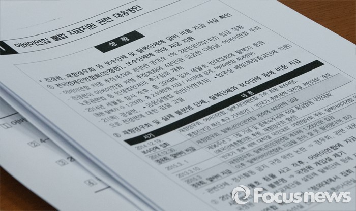 (서울=포커스뉴스) 22일 오전 서울 여의도 국회에서 열린 더불어민주당 비상대책위원회의에 참석한 한 당직자가 전경련의 어버이연합 자금지원 의혹 관련 대응방안 자료를 보고 있다.