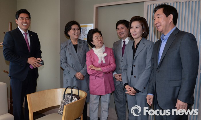 (서울=포커스뉴스) 새누리당 20대 총선 서울 지역 당선인들이 22일 오후 서울 여의도 한 일식집에서 오찬 모임에 앞서 대화를 하고 있다. 왼쪽부터 오신환, 이혜훈, 이은재, 지상욱, 나경원, 김성태 당선인.