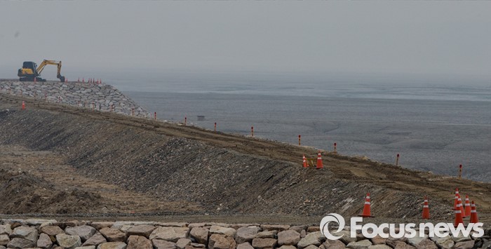 (인천=포커스뉴스) 마흔 여섯번째 지구의 날을 맞은 22일 오전 경기 인천시 영종도 갯벌에 매립공사가 진행되고 있다. 지구의 허파로 불리는 갯벌은 생태계 면적의 0.3%에 불과하지만 자연의 정화조로서 생태적 가치는 숲의 10배, 농경지의 100배에 달한다. 간척과 매립 등 인간의 욕심으로 서서히 사라져가는 갯벌, 어머니 지구의 준엄한 경고를 새겨들을 때이다.