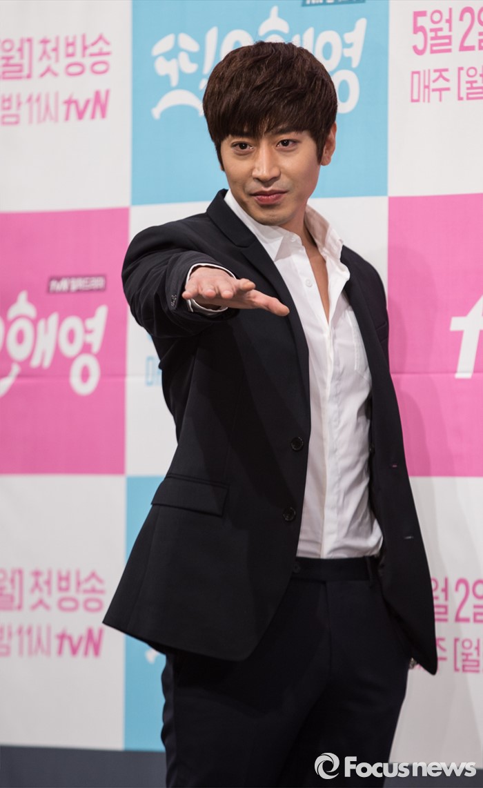 (서울=포커스뉴스) 22일 오후 서울 강남구 임피리얼 팰리스호텔에서 열린 tvN 월화드라마 '또! 오해영' 제작발표회에 참석한 배우 에릭이 소속 아이돌 그룹 신화의 구호를 외치고 있다.