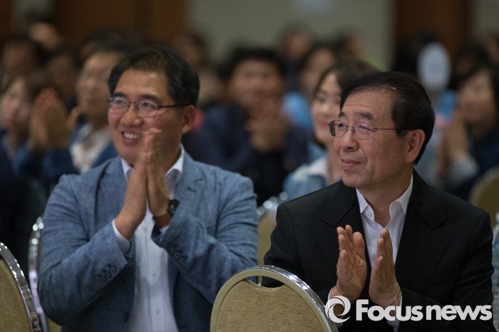 (서울=포커스뉴스) 22일 오후 서울 용산구 백범기념관에서 열린 사회복지사협의회 창립 30주년 기념행사에서 박원순 서울시장이 박수를 치고 있다.