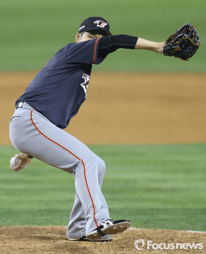 (서울=포커스뉴스) 22일 서울 잠실구장에서 열린 2016 프로야구 한화-두산 경기 6회말 2사 1,3루에서 한화 투수 박정진이 구원 등판해 투구하고 있다.