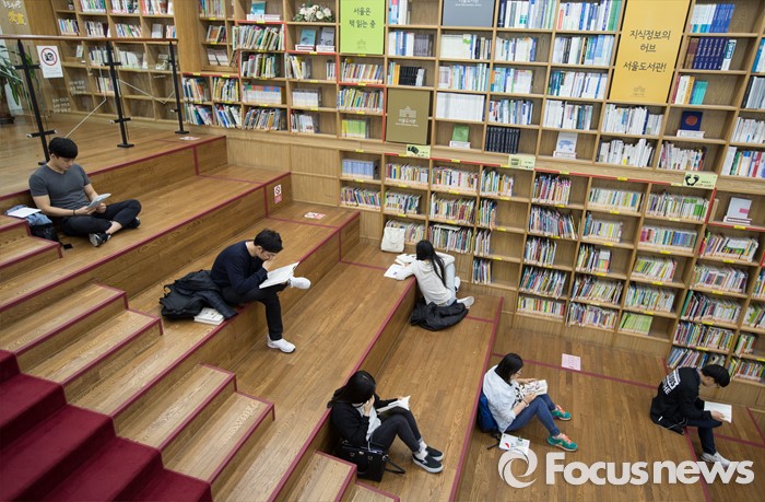 (서울=포커스뉴스) 세계 책의 날을 하루 앞둔 22일 오후 서울 중구 서울도서관에서 시민들이 책을 읽고 있다.