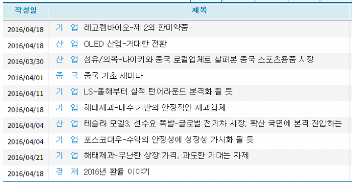 이번주(4월24일~30일) 증권사에서는 1분기 좋은 성적을 거둔 종목들에게 우선적으로 관심을 가졌다.