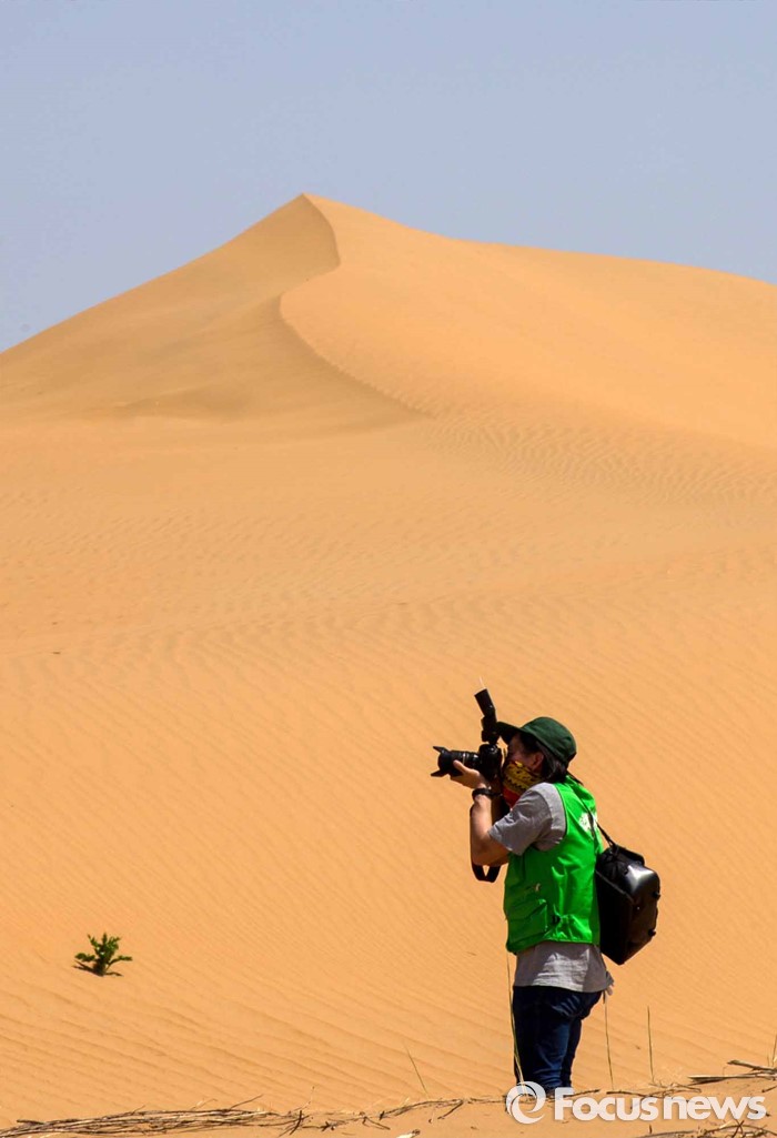 (다라더치/중국=포커스뉴스) 24일 오전 중국 내몽고 다라더치 쿠부치사막에서 한ㆍ중ㆍ일 대학생들로 구성된 2016 미래숲 15기 녹색봉사단원들이 사막트래킹을 하고 있다. 미래숲 녹색봉사단은 이번 봉사활동을 통해 황폐화된 사막에 나무 심기 및 각국 청년들과 우호를 증진을 위한 교류 활동을 전개할 예정이다.