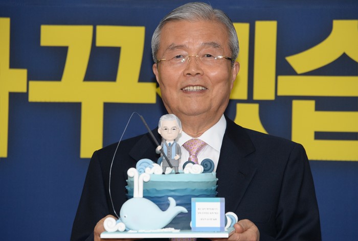 | △ 손녀팬에게 케이크 선물 받은 김종인 |