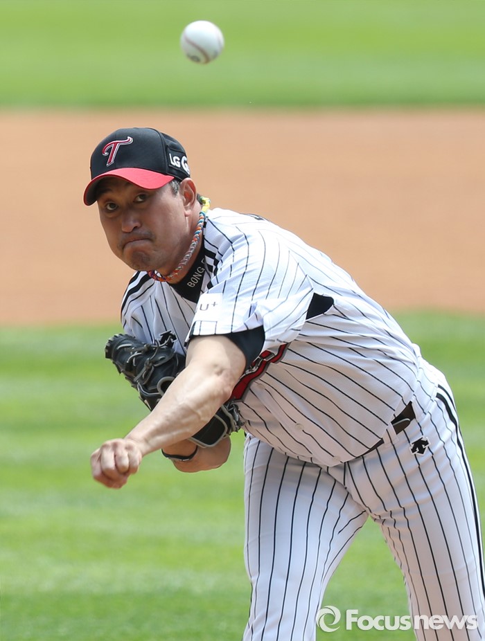 (서울=포커스뉴스) 1일 서울 잠실구장에서 열린 2016 프로야구 kt-LG 경기에서 1회초 LG 선발투수 봉중근이 투구하고 있다.