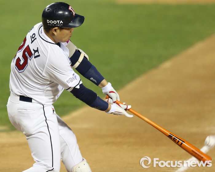 (서울=포커스뉴스) 28일 서울 잠실구장에서 열린 2016 프로야구 SK-두산 경기 6회말 1사 2,3루에서 두산 양의지가 동점 주자를 불러 들이는 좌익수 왼쪽으로 떨어지는 안타를 날리고 있다.