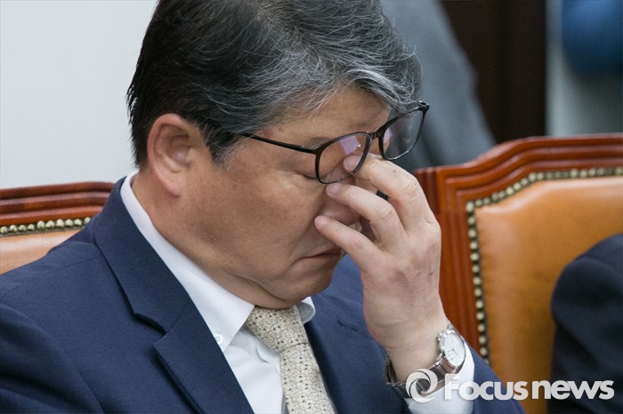 (서울=포커스뉴스) 조원진 새누리당 원내수석부대표가 25일 오전 서울 여의도 국회에서 열린 상임위원장 · 간사단 연석회의에 참석해, 피곤한 듯 얼굴을 만지고 있다.