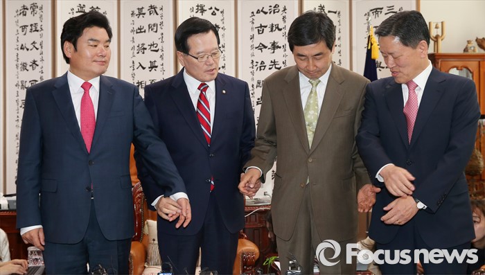 이어 "나머지 오전부터 하면 충분하지 않겠나 싶다"며 "늦어지면 5·18 행사가 있어서 19일이나 20일에 해도 된다"고 설명했다.정의화(왼쪽 두번째) 국회의장과 여야 3당 원내대표가 18일 오전 서울 여의도 국회 의장실에서 열린 첫 회동에서 정 의장의 제안으로 손을 맞잡고 있다. 왼쪽부터 새누리당 원유철 원내대표, 정 의장, 더불어민주당 이종걸 원내대표, 국민의당 주승용 원내대표. 2016.04.18 박철중 기자