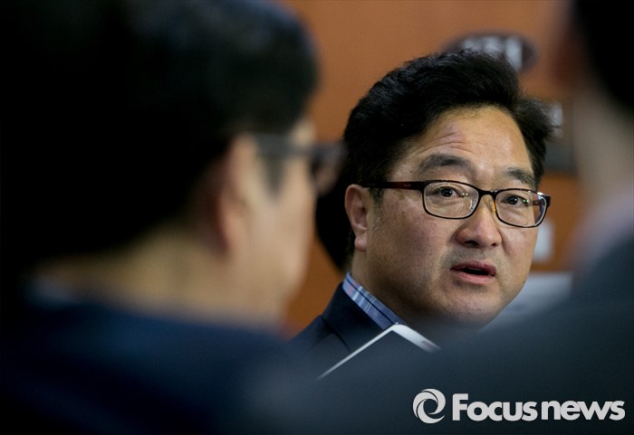 (서울=포커스뉴스) 우원식 더불어민주당 의원이 29일 오후 서울 여의도 국회 정론관에서 원내대표 출마 기자회견을 마친 뒤 취재진 질문에 답하고 있다.