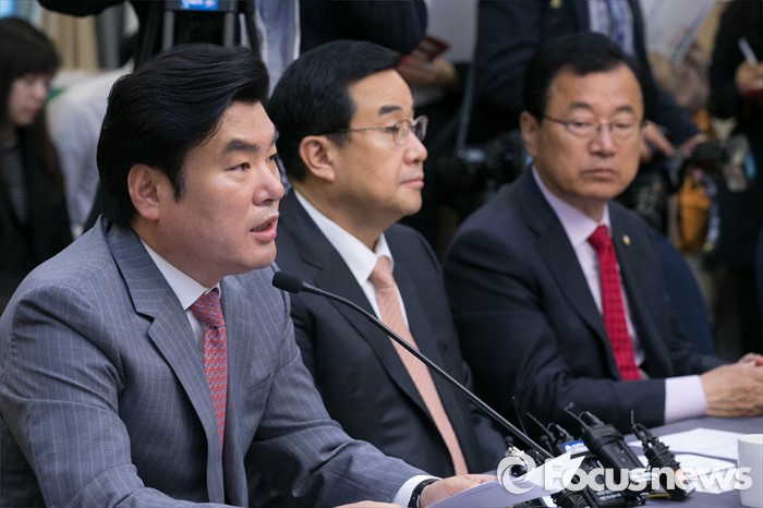 (서울=포커스뉴스) 원유철(왼쪽) 새누리당 대표최고위원 권한대행이 27일 오전 서울 여의도 국회 귀빈식당에서 열린 청년 · 여성 일자리대책 당정협의에 참석해, 모두발언하고 있다.