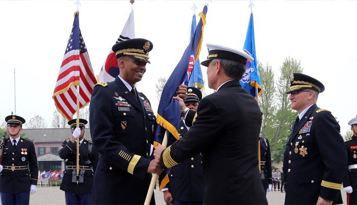 △ 주한미군기 전달 받는 신임 한·미연합사령관