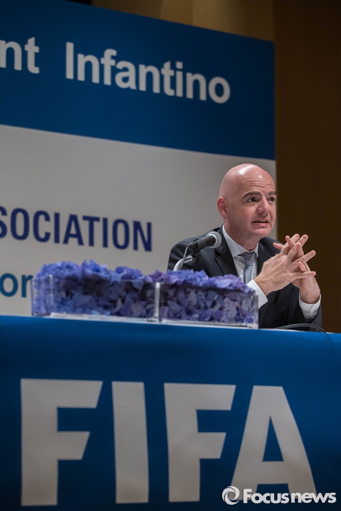 (서울=포커스뉴스) 한국을 방문한 지아니 인판티노(46, 스위스) FIFA 회장이 27일 오후 서울 강남구 아이파크타워에서 열린 기자회견에 참석, 취재진의 질문을 듣고 있다.