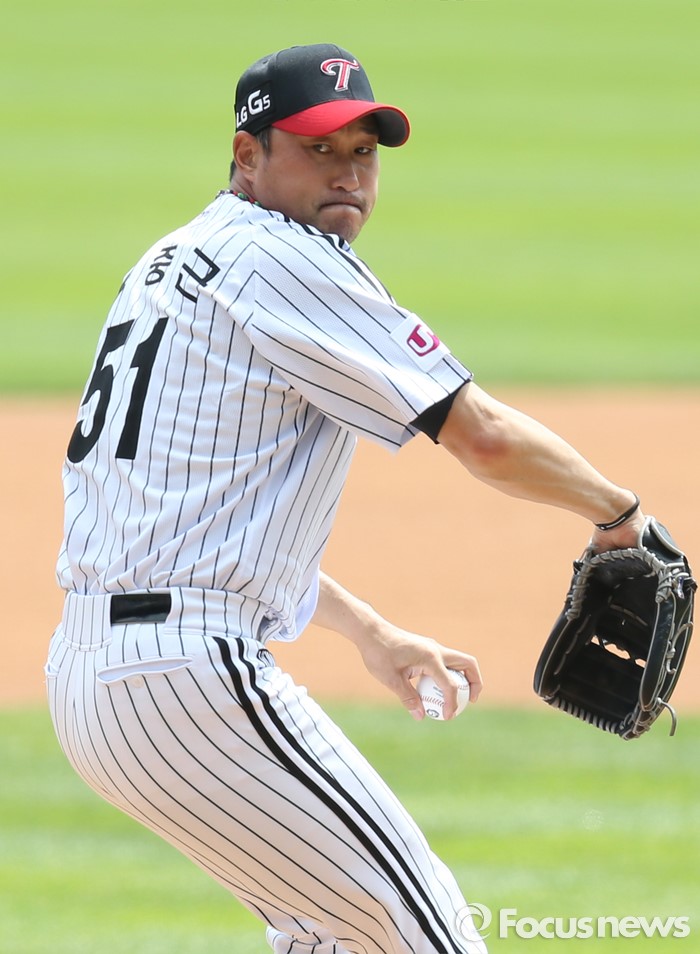 (서울=포커스뉴스) 1일 서울 잠실구장에서 열린 2016 프로야구 kt-LG 경기에서 1회초 LG 선발투수 봉중근이 투구하고 있다.