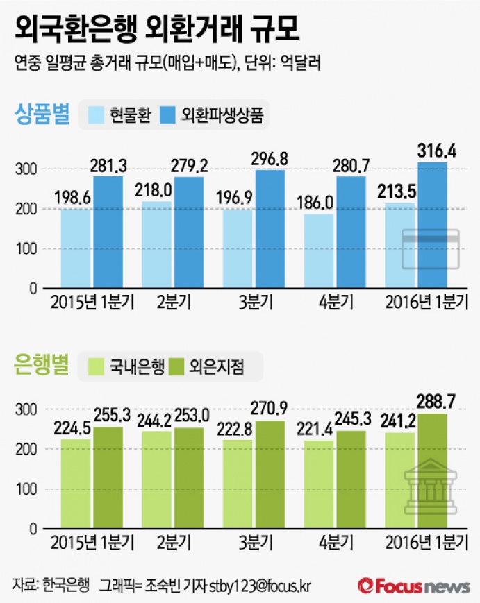 은행별로는 국내은행 외환거래가 전분기 대비 8.9% 증가한 241억2000만달러, 외은지점은 17.7% 증가한 288억7000만달러로 각각 집계됐다.