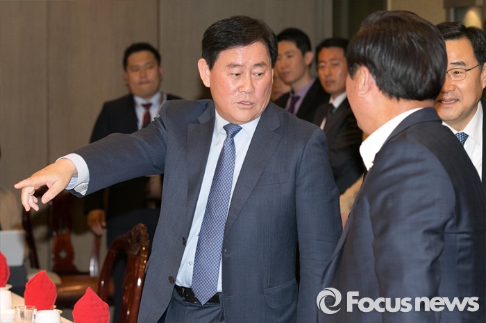 (서울=포커스뉴스) 최경환(왼쪽) 새누리당 의원이 25일 오후 서울 여의도의 한 중식당에서 열린 중진의원 오찬 간담회에 참석해, 의원들과 대화하고 있다.