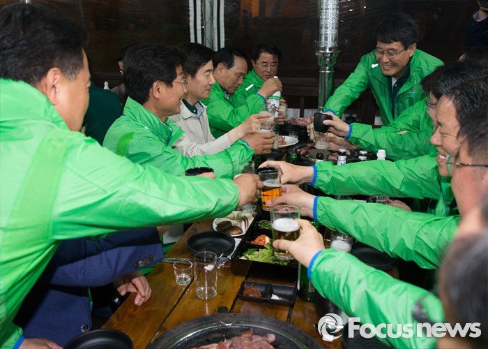 (양평=포커스뉴스) 천정배(왼쪽) 국민의당 공동대표를 비롯한 20대 총선 당선인들이 26일 오후 경기도 양평 한화리조트에서 열린 국민의당 20대 총선 당선자 워크숍에 참석, 저녁식사 중 건배를 하고 있다.