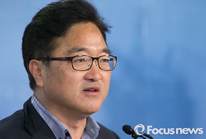 (서울=포커스뉴스) 우원식 더불어민주당 의원이 29일 오후 서울 여의도 국회 정론관에서 원내대표 출마 기자회견을 하고 있다.