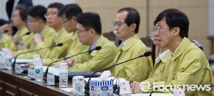 (세종=포커스뉴스) 김경환(오른쪽) 국토교통부 1차관이 2일 오전 세종시 정부세종청사 국토부 대회실에서 열린 철도·항공기 등 안전한국훈련 준비상황 보고회에서 회의를 주재하고 있다.