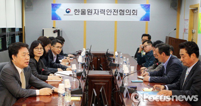 (서울=포커스뉴스) 김용환 원자력안전위원회 위원장이 27일 한울원자력본부 제1발전소 회의실에서 한울원자력안전협의회 위원들과 간담회를 나누고 있다. 김 위원장은 지난 15일 취임해 고리원자력안전협의회를 시작으로 지역주민과의 소통을 강조하며 각 지역 원자력안전협의회 위원들과 소통 행보를 이어갔다. <사진제공=원자력안전위원회>