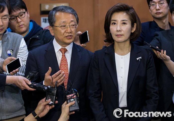 (서울=포커스뉴스) 새누리당 차기 원내대표 경선 후보등록 마감 예정일인 1일 오전 서울 여의도 국회 정론관에서 차기 원내대표 후보인 나경원 의원과 정책위의장 후보 김재경 의원이 출마 기자회견을 갖고 있다.