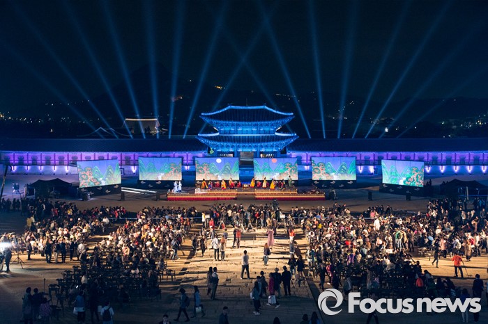 (서울=포커스뉴스) 29일 저녁 서울 경복궁 흥례문 광장에서 제 2회 궁중문화축전 개막제가 열리고 있다. '오늘, 궁을 만나다'를 주제로 열리는 2016년 궁중문화축전은 다채로운 프로그램들과 함께 5월 8일까지 열린다.