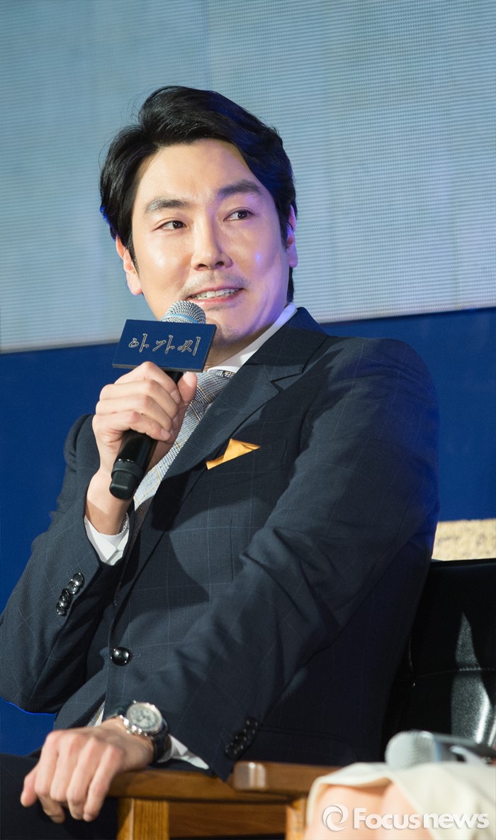 (서울=포커스뉴스) 2일 오전 서울 중구 웨스틴조선호텔에서 열린 영화 '아가씨' 제작보고회에 참석한 배우 조진웅이 인사말을 하고 있다.