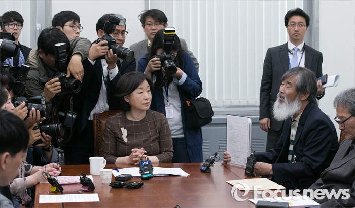 (서울=포커스뉴스) 28일 오전 서울 여의도 국회에서 심상정 정의당 상임대표 주재로 열린 가습기 살균제 3, 4등급 피해자 의료기록 분석 결과 및 피해 진상규명을 위한 간담회에 참석한 한 피해자가 진단서를 들고 발언하고 있다.