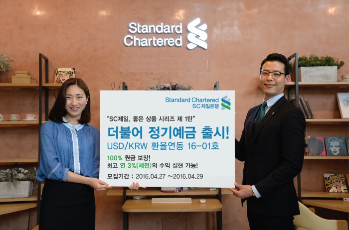 26일 SC제일은행은 '좋은 상품 시리즈'의 첫번째 상품으로 '더불어정기예금 원·달러 환율 연동 16-01호'를 27일부터 29일까지 3일 간 판매한다고 밝혔다.