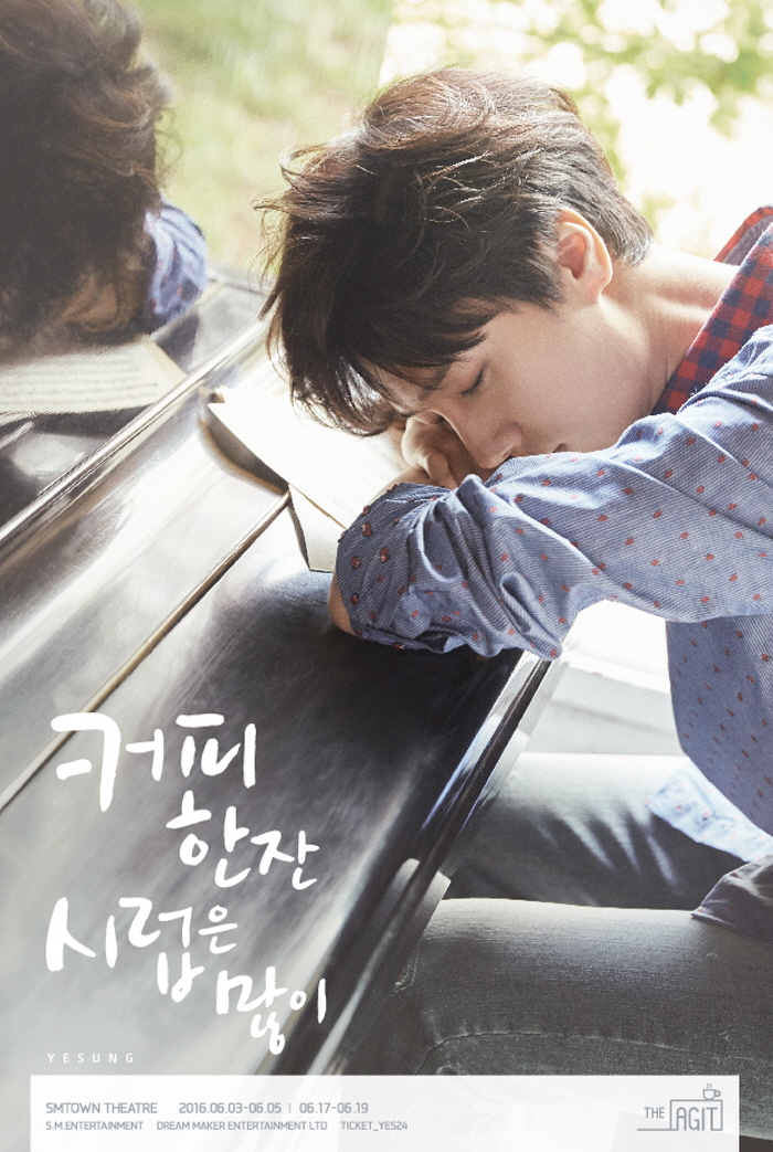 SM 아티스트들만의 아지트로 팬들을 초대한다는 의미를 가진 SM 콘서트 시리즈 브랜드 ‘디 아지트’는 지난해 10월 샤이니 종현을 시작으로 소녀시대 태연, 슈퍼주니어 규현과 려욱이 솔로 콘서트를 펼쳐 아티스트의 매력을 만끽할 수 있는 특별한 공연으로 큰 호응을 얻은 바 있다.보이그룹 슈퍼주니어 멤버 예성이 SM 콘서트 시리즈 브랜드 ‘디 아지트(THE AGIT)’의 다섯 번째 주자로 오는 6월 3~5일, 17~19일 6일간 총 6회에 걸쳐 서울 삼성동 SM타운 코엑스 아티움에서 첫 솔로 콘서트 ‘커피 한 잔 시럽은 많이’를 개최한다. 사진은 콘서트 포스터. <사진제공=SM엔터테인먼트>