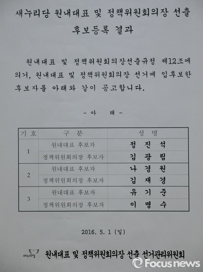 (서울=포커스뉴스) 새누리당의 20대 국회 첫 원내대표 선출을 하루 앞둔 2일 오후 서울 여의도 국회 새누리당 사무실 앞에 원내지도부 선출을 위한 당선자총회를 알리는 공고문이 게시되어 있다.