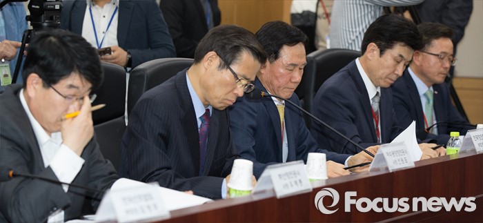 (세종=포커스뉴스) 김영석 해양수산부 장관 주재로 25일 오후 세종시 정부세종청사 해양수산부 중회의실에서 열린 해운시장 및 해운동맹 재편 관련 대책회의에서 참석자들이 굳은 표정을 보이고 있다.