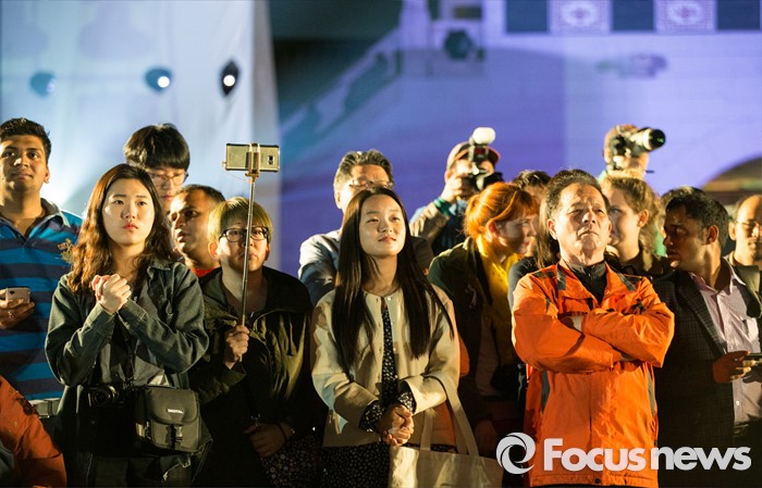 (서울=포커스뉴스) 고궁에 온 관람객들이 29일 밤 경복궁 흥례문 광장에서 열린 제2회 궁중문화축전 개막제를 관람하고 있다. '오늘, 궁을 만나다'를 주제로 열리는 2016년 궁중문화축전은 다채로운 프로그램들과 함께 5월 8일까지 열린다.