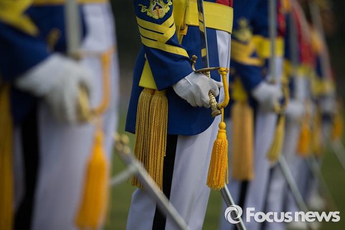 (서울=포커스뉴스) 29일 오후 서울 노원구 육군사관학교에서 열린 개교 70주년 기념식에서 생도들이 도열하고 있다.