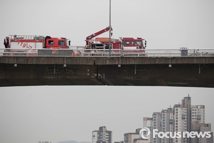 (서울=포커스뉴스) 27일 오전 서울 영등포구 여의도 한강공원 원효대교 일대에서 '수도 서울 민․관․군 합동 대규모 복합재난 가상훈련'이 열리고 있다.