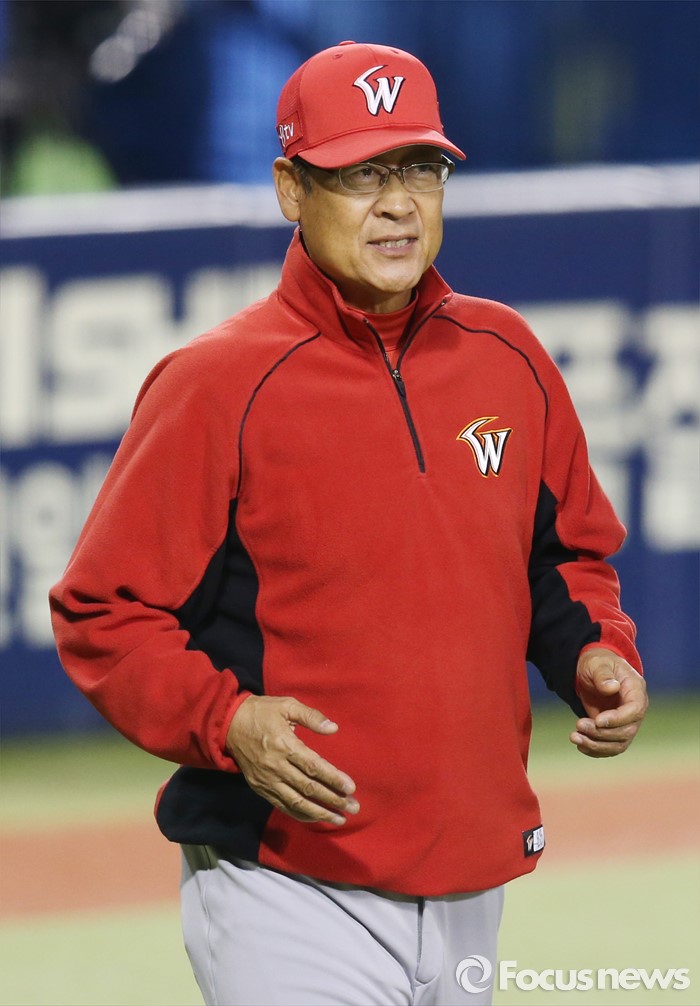 (서울=포커스뉴스) 28일 서울 잠실구장에서 열린 2016 프로야구 SK-두산 경기에서 4회말 SK 김용희 감독이 이계성 주심에게 항의하고 있다.