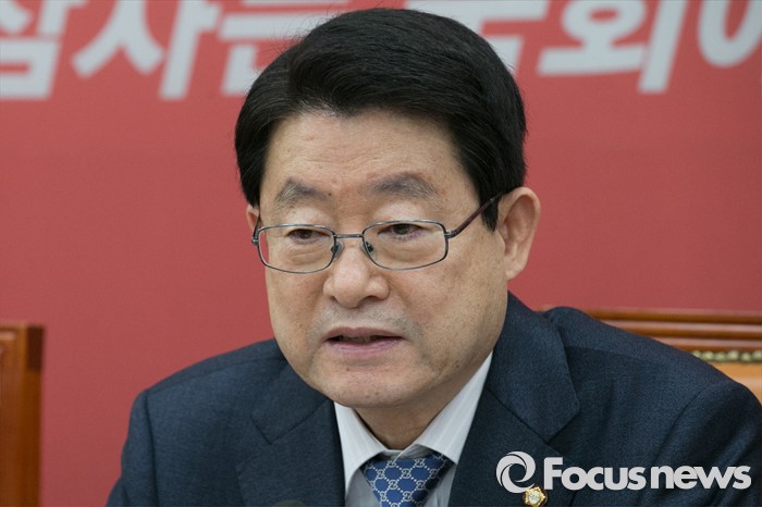 (서울=포커스뉴스) 정희수 기획재정위원회 위원장이 25일 오전 서울 여의도 국회에서 열린 새누리당 상임위원장 · 간사단 연석회의에 참석해, 발언하고 있다.