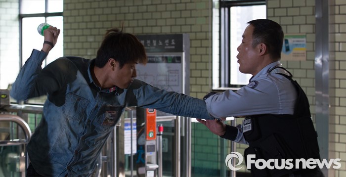 (서울=포커스뉴스) 28일 오후 서울 성동구 성수역 대합실에서 난동자가 서울메트로 소속 지하철보안관들을 위협하는 훈련을 하고 있다.