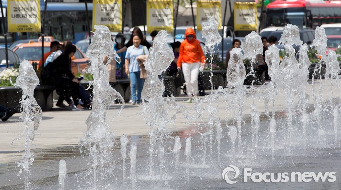 기상청 관계자는 "광주·전남·영남권·제주권은 강수의 세정으로 대체로 청정한 대기상태를 낼 것으로 예상된다"며 "다만 중부 및 일부 내륙지역은 축적된 미세먼지와 국외 미세먼지의 유입으로 농도가 높게 나타날 수 있다"고 말했다.서울 한낮 기온이 초여름 날씨를 보이는 26일 오후 광화문광장 바닥분수대를 찾은 시민들과 외국인 관광객들이 즐거운 시간을 보내고 있다. 2016.04.26 김인철 기자