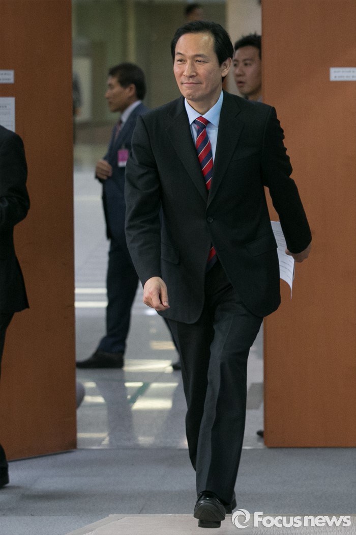 (서울=포커스뉴스) 우상호 더불어민주당 의원이 29일 오후 서울 여의도 국회 정론관에서 당 원내대표 출마 기자회견을 위해 입장하고 있다.