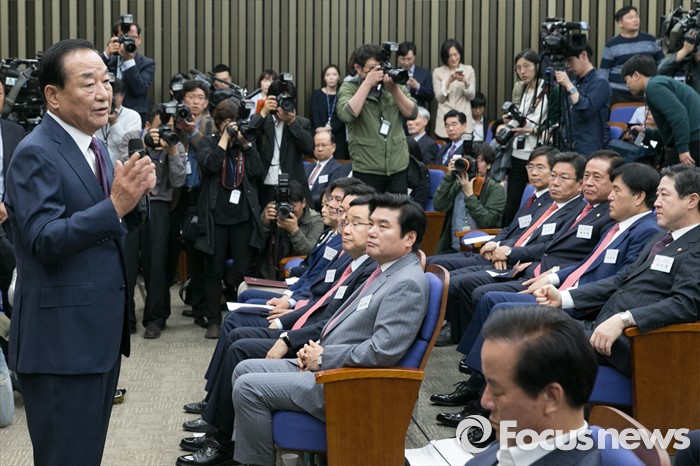 (서울=포커스뉴스) 서청원 새누리당 의원이 26일 오전 서울 여의도 국회에서 열린 당선자 워크숍에 참석해, 당선자 대표 인사말을 하고 있다.