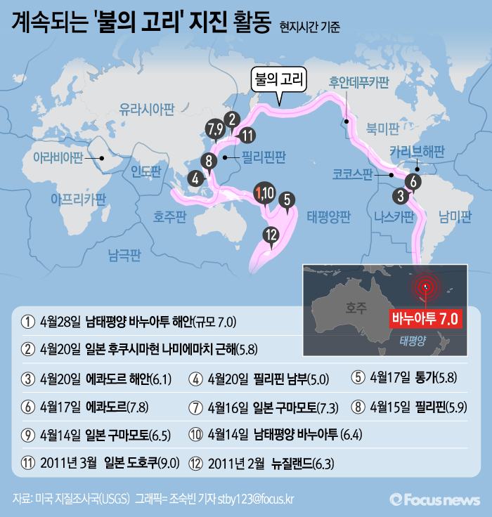 | △ [그래픽] 계속되는 '불의 고리' 지진 활동 |