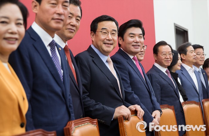 (서울=포커스뉴스) 원유철(왼쪽 다섯번째) 새누리당 대표최고위원 권한대행을 비롯한 원내대표단이 2일 오전 서울 여의도 국회에서 열린 마지막 원내대책회의에 앞서 기념촬영을 하고 있다.