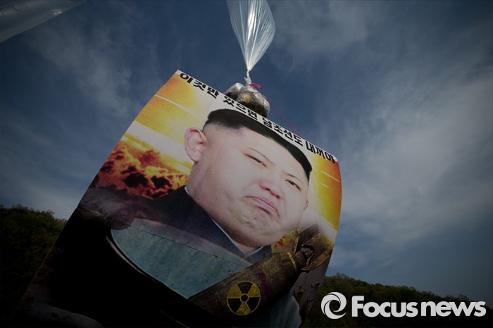 (파주=포커스뉴스) 29일 오후 경기 파주 낙하IC 인근에서 탈북자단체인 자유북한운동연합이 북한에 핵과 미사일을 포기하고 국제사회 일원으로 참여할 것을 촉구하는 내용의 대북전단을 날려보내고 있다.