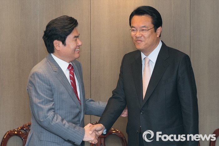 이어 "지금까지는 (새누리당이) 다수당으로서, 집권여당으로서 당당하게 1당의 목소리를 높였지만 이제는 그렇게만 할 수 없는 형편"이라며 "이제는 여야 모두 1당의 힘으로 이룰 수 있는 일은 아무것도 없다. 타협과 대화를 통해서만 결과를 도출해낼 수 있는 현실이기 때문에 그 점을 우리가 충실히 이해하고 적응해 나가야한다고 생각한다"고 말했다.원유철(왼쪽) 새누리당 원내대표와 정진석 당선인이 25일 오후 서울 여의도의 한 중식당에서 열린 중진의원 오찬 간담회에 참석해 악수하고 있다. 2016.04.25 박철중 기자