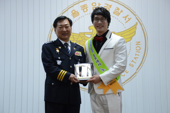 임홍기 서장도 "지역 주민에게 친근하게 다가설 수 있는 방송인 노민씨를 홍보대사로 위촉하게 돼 든든하다"고 기대감을 보였다.임홍기 서울 종암경찰서장(왼쪽)이 방송인 노민씨에게 4대 사회악·아동학대 근절 캠페인 홍보대사 위촉장을 전달하고 있다. <사진제공=서울 종암경찰서>