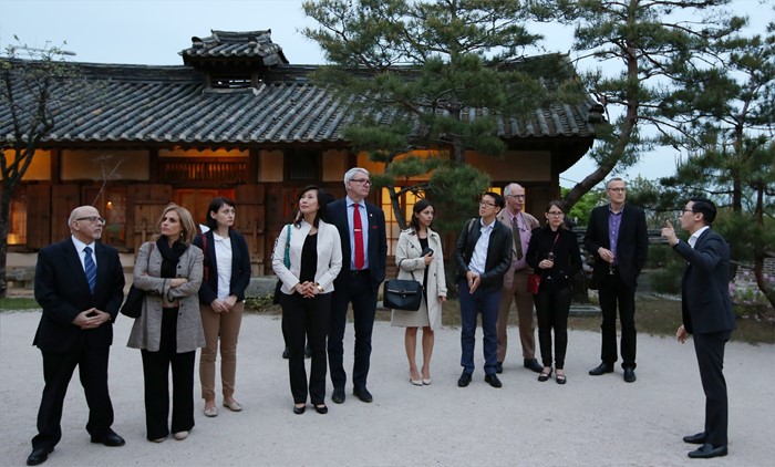 (서울=포커스뉴스) 문화체육관광부 해외문화홍보원(원장 김갑수)이 주한 외국인을 대상으로 한국문화를 소개하는 문화공감 콘서트 '헬로, 미스터 케이!(Hello, Mr. K!)’가 27일 성북구가구박물관에서 열렸다. 이날 콘서트에 참석한 주한 외국대사 및 직원, 외신 기자들이 조선시대 한옥에 대해 설명듣고 있다. <사진제공=문화체육관광부>