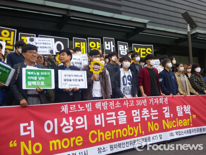 공동행동은 "30년 전 오늘 구 소련 체르노빌에서는 최악의 핵발전 사고로 기록된 참사가 일어나 수만 명이 사망했다"며 "그런데도 인류는 체르노빌의 교훈을 잊은 채 핵발전을 계속해왔고 그 결과 5년 전 후쿠시마에서는 또 한번 핵발전소 폭발 사고가 일어났다"고 밝혔다.