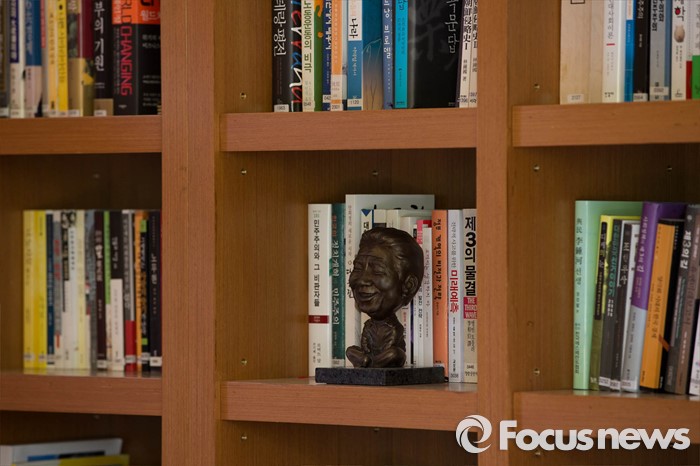 (김해=포커스뉴스) 고 노무현 전 대통령 서거 7주기를 앞두고 1일 오전 노 전 대통령의 사저가 공개되고 있다. 사진은 서재의 모습.